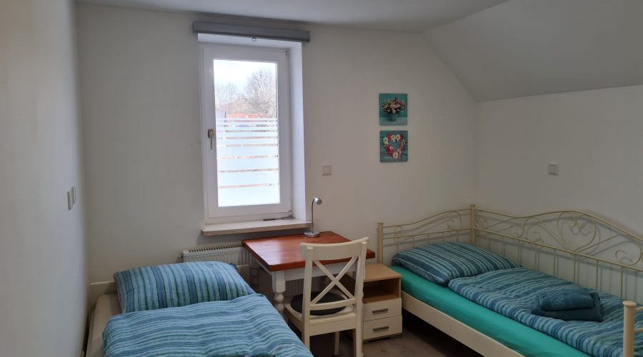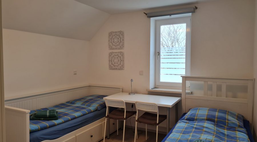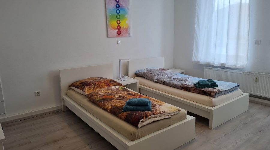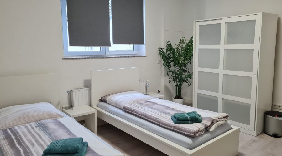 1 x Schlafzimmer mit 2 Einzelbetten für 2 Personen mit Waschbecken